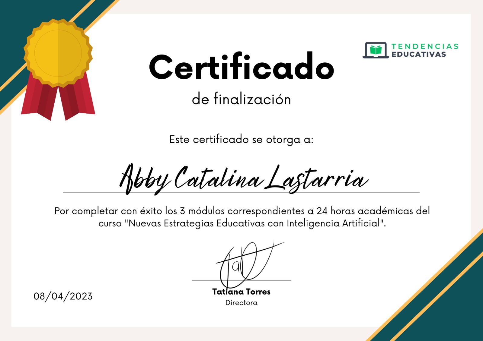 Al terminar el curso te emitimos un certificado de finalización por las 25 horas académicas realizadas, validado por nuestra Academia de Tendencias Educativas.
