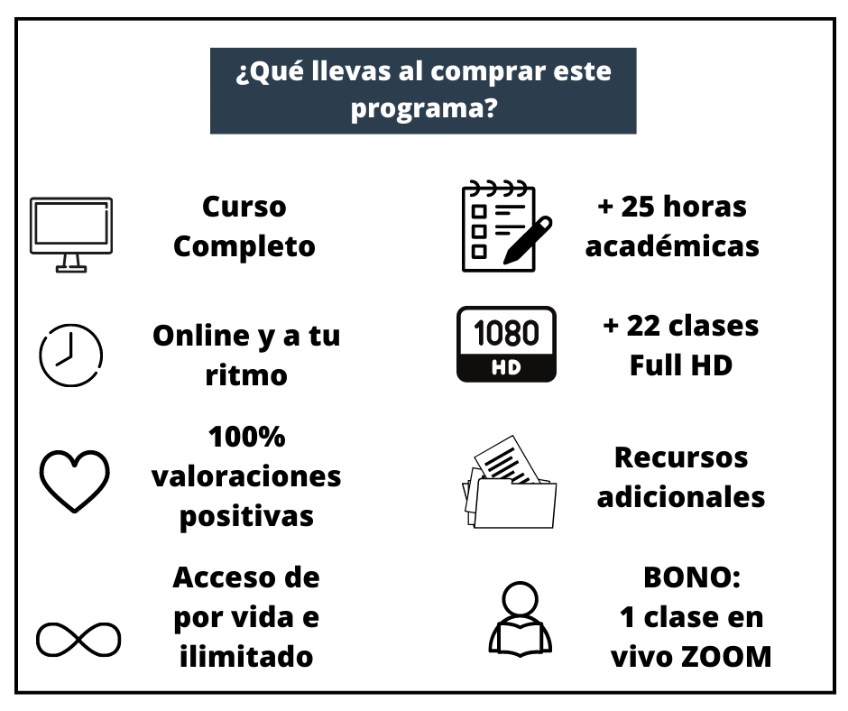 En el mercado existen cursos presenciales que resultan bastante extenuantes y dispendiosos donde debes invertir bastante tiempo en ellos, además un curso presencial te podría costar alrededor de 500 a 800 dólares mensuales. Con este programa solo pagas $59 dólares (hasta hoy) y tendrás el curso para toda la vida, además de obtener las actualizaciones futuras para siempre, también podrás estudiarlo desde tu casa o un entorno mas cómodo al aprendizaje y repetir las clases para recordar en todo momento.